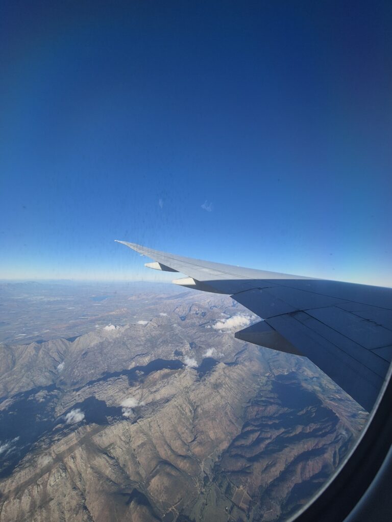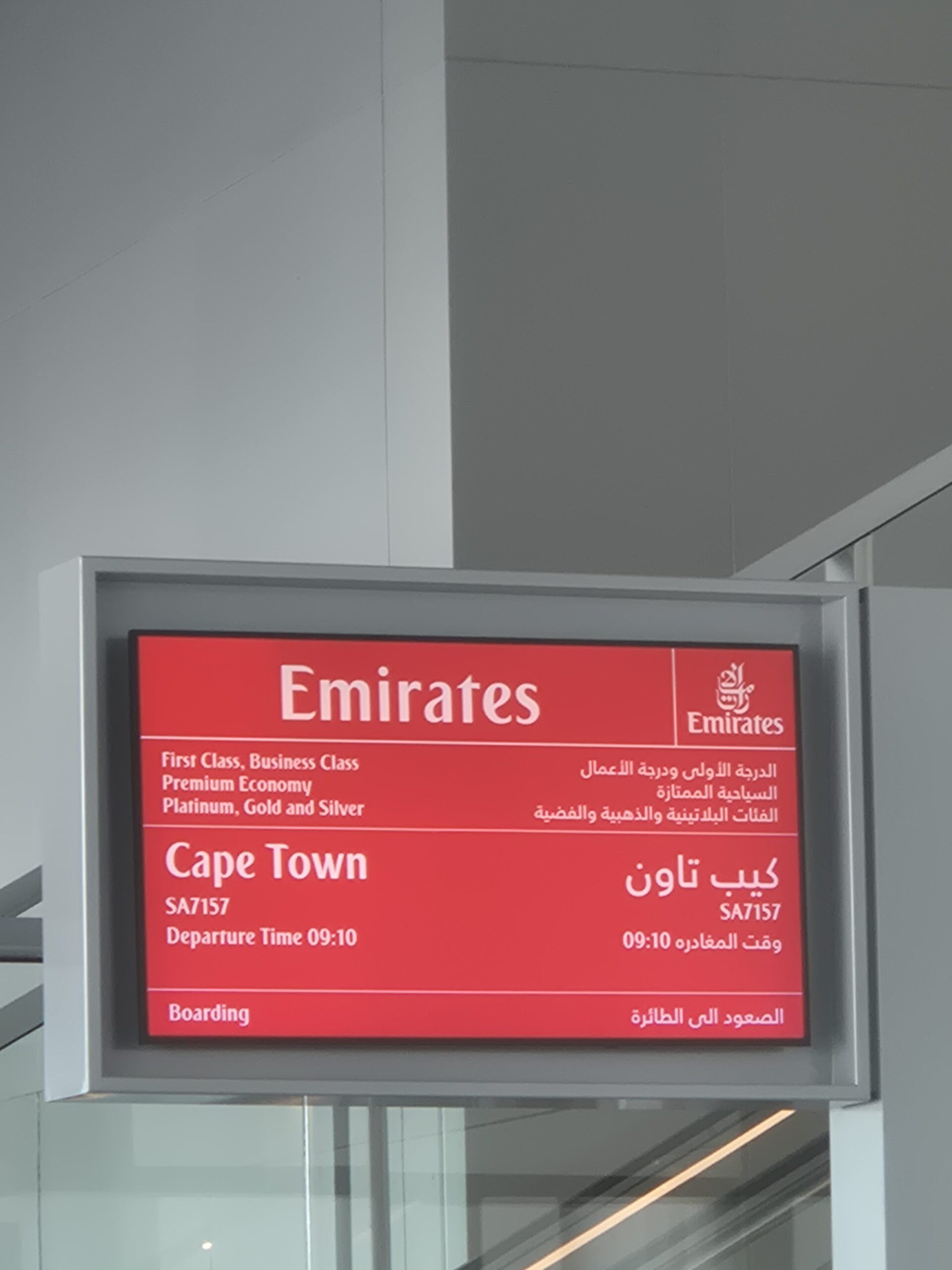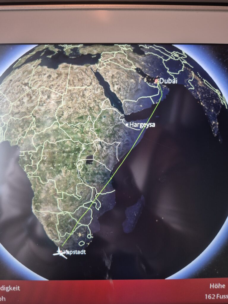 Der Koffer wird direkt zum nächsten Flug weitergeleitet, glücklicherweise ist auch der Anschlussflug am gleichen Terminal, sodass es nur eine kurze Zwischenkontrolle gibt.👍 Pünktlich um 9:10 Uhr geht es weiter Richtung Kapstadt.